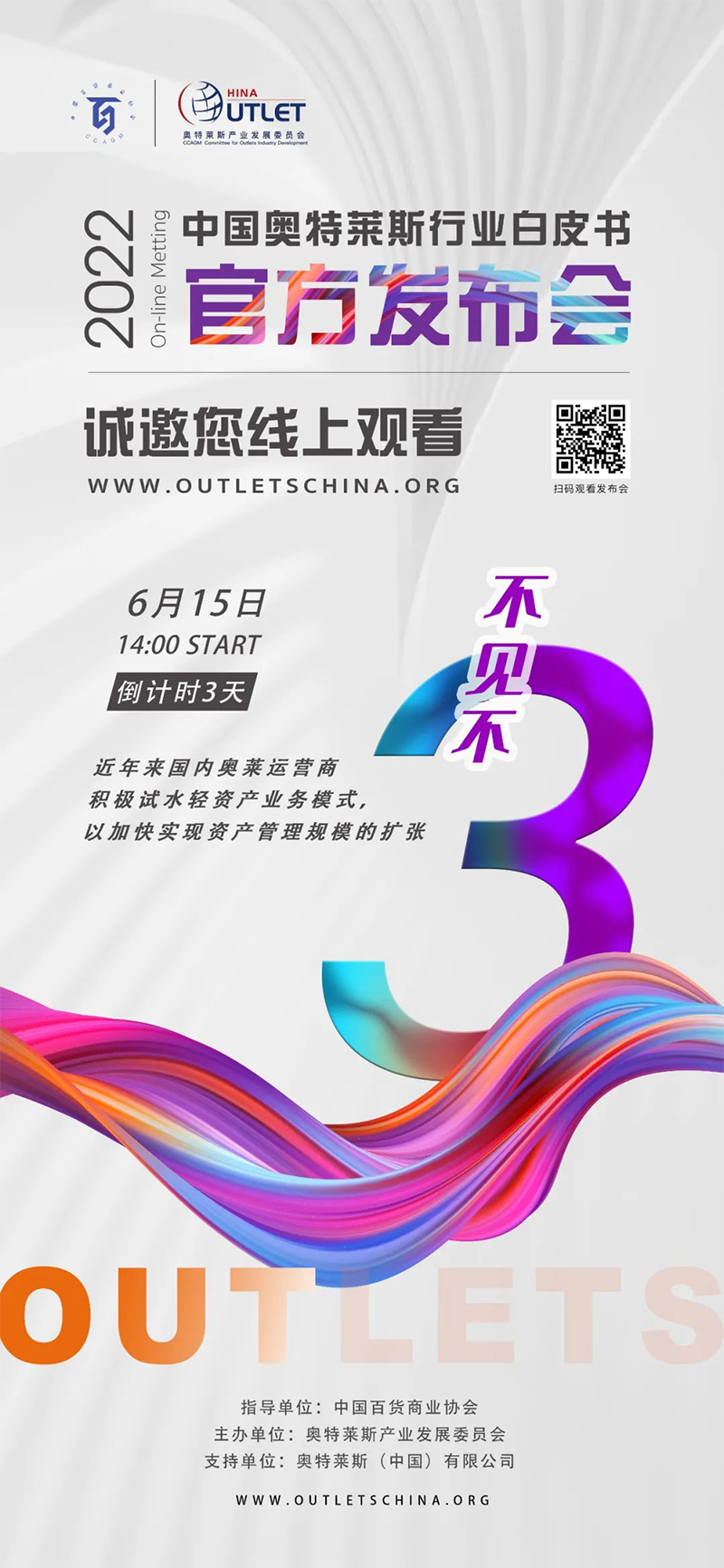 2022年6月15日14:00,《2022年中國奧特萊斯行業(yè)白皮書》線上發(fā)布會即將正式開始,本次發(fā)布會,將對國內(nèi)零售市場及奧萊產(chǎn)業(yè)引入中國20年發(fā)展的經(jīng)驗及機遇做出全新解讀。