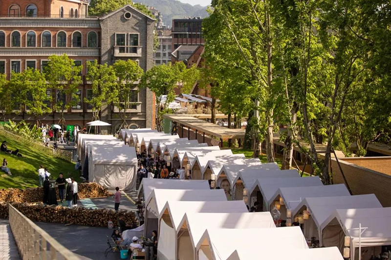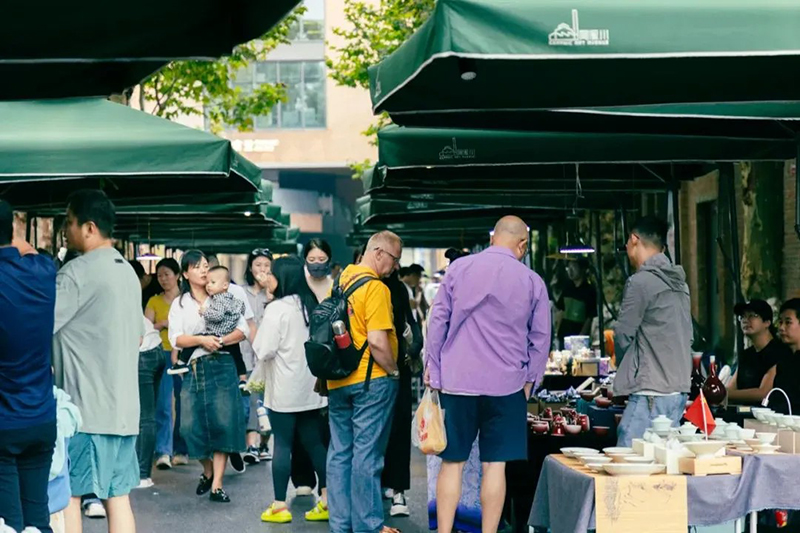 集市每周五、周六在街區(qū)廣場(chǎng)及主干道開(kāi)市,占地9000平米,吸引數(shù)千名景漂創(chuàng)業(yè)青年參與,每月進(jìn)行報(bào)名和重新篩選。
