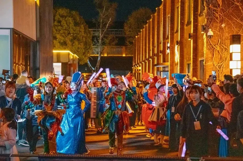 夜幕徐徐降臨,華燈初起,鳳凰山下的陶溪川文創(chuàng)街區(qū)被燈光勾勒出優(yōu)美的金色線條,胡桃里的音樂(lè)飄搖,人流不息,一派青春活力。