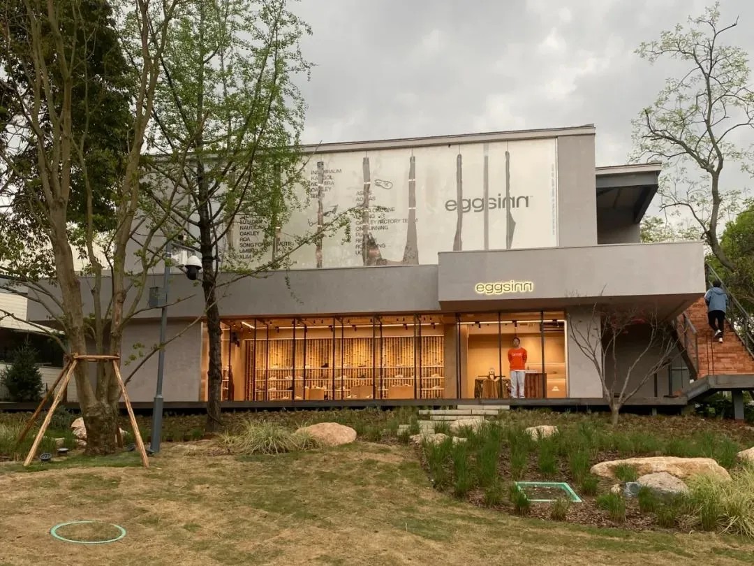 匯聚如此多上海、成都炙手可熱的品牌,卻能保持住松弛的調(diào)性,沒有呈現(xiàn)出“潮流網(wǎng)紅”的氣質(zhì),除了優(yōu)秀的運(yùn)營外還得益于在更新過程中,其原有的空間肌理被最大程度保留下來,在現(xiàn)場能夠看到大面積的草坪、高差不一的建筑,甚至路邊的巨石,整體更接近自然狀態(tài)。