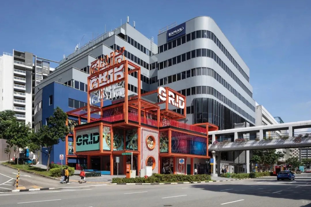 新加坡GRiD項(xiàng)目位于實(shí)利基藝術(shù)區(qū),經(jīng)設(shè)計(jì)改造,將普通街角轉(zhuǎn)變?yōu)榛盍λ囊绲膭?chuàng)意社交中心。其立面改造尤為亮眼,通過(guò)重新設(shè)計(jì)建筑轉(zhuǎn)角,運(yùn)用工業(yè)風(fēng)材料與肌理,彰顯朋克搖滾精神與自由表達(dá)風(fēng)格,成為引人注目的視覺(jué)焦點(diǎn)與地標(biāo)。