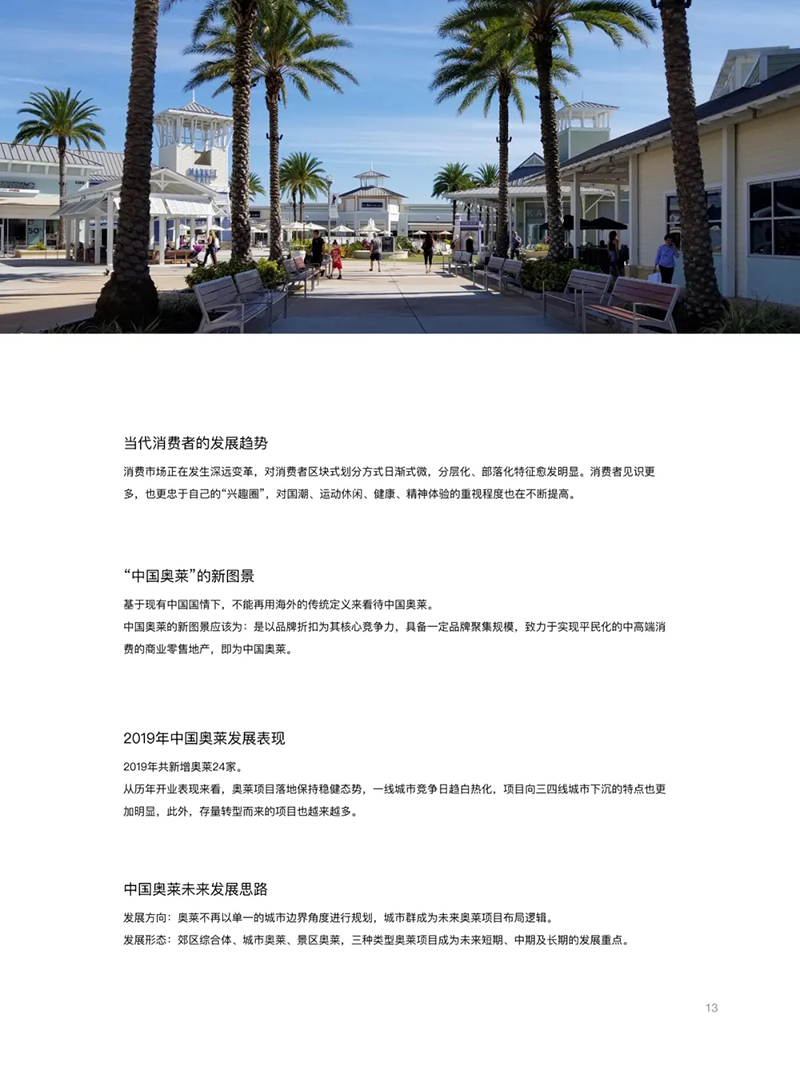 在經(jīng)濟(jì)全球化深?發(fā)展和新消費(fèi)時(shí)代迅猛邁進(jìn)的今天,奧特萊斯作為新零售的典型代表,仍在全球范圍內(nèi)保持著快速、穩(wěn)定發(fā)展的態(tài)勢(shì),且已逐步拓展至休閑、健康、醫(yī)療、旅游、電子商務(wù)等多個(gè)領(lǐng)域及行業(yè),充分顯示出旺盛的?命?和?限的發(fā)展活力。