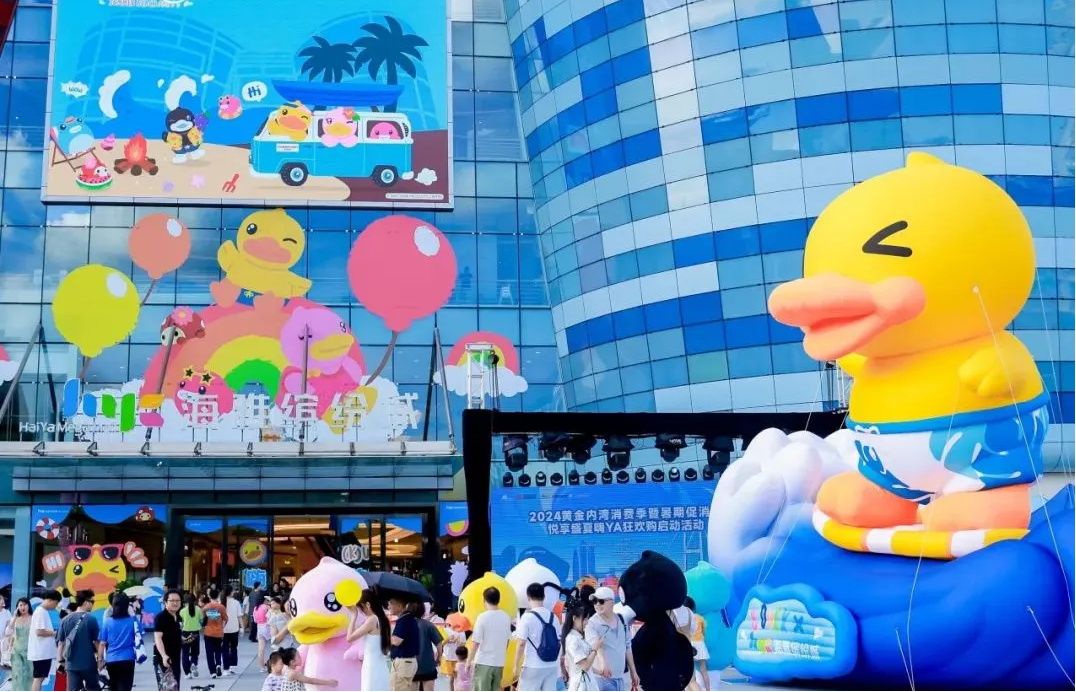 時(shí)值暑期,深圳海雅繽紛城邀請(qǐng)B.Duck品牌創(chuàng)辦人“鴨爸爸”許夏林,以及市/區(qū)商務(wù)局、中山商務(wù)局、新安街道辦、市零售商業(yè)行業(yè)協(xié)會(huì)等官方代表,共同開(kāi)啟了2024黃金內(nèi)灣消費(fèi)季暨暑期促消費(fèi)——悅享盛夏嗨Ya狂歡購(gòu)系列活動(dòng)的序幕,成功完成中國(guó)第一自主IP B.DUCK小黃鴨的“B.DUCK嗨YA狂歡節(jié)全國(guó)首展”。