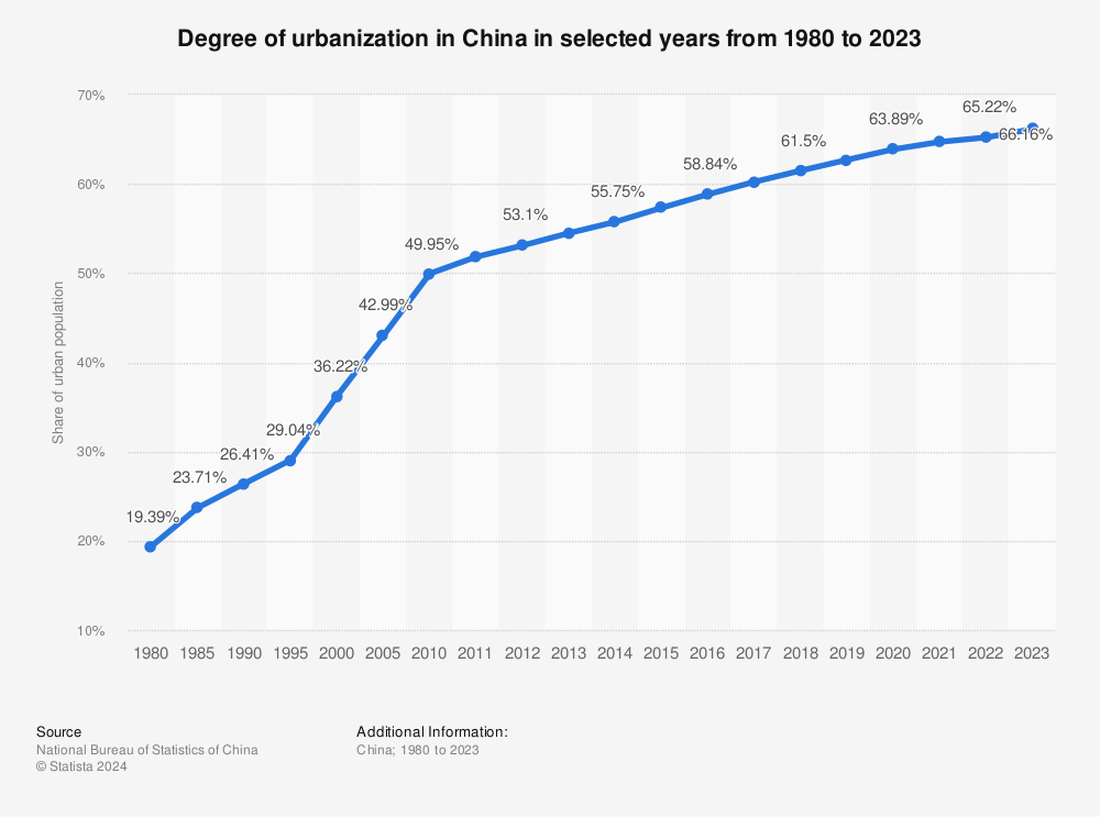 報告中顯示,2023年末,我國城鎮(zhèn)常住人口已經(jīng)達到了9.3億,城鎮(zhèn)化率66.16%,即,每三個中國人中,有兩個生活在城市里。此外,我國地級以上城市常住人口達到6.7億人,常住人口超過500萬的城市有29個。