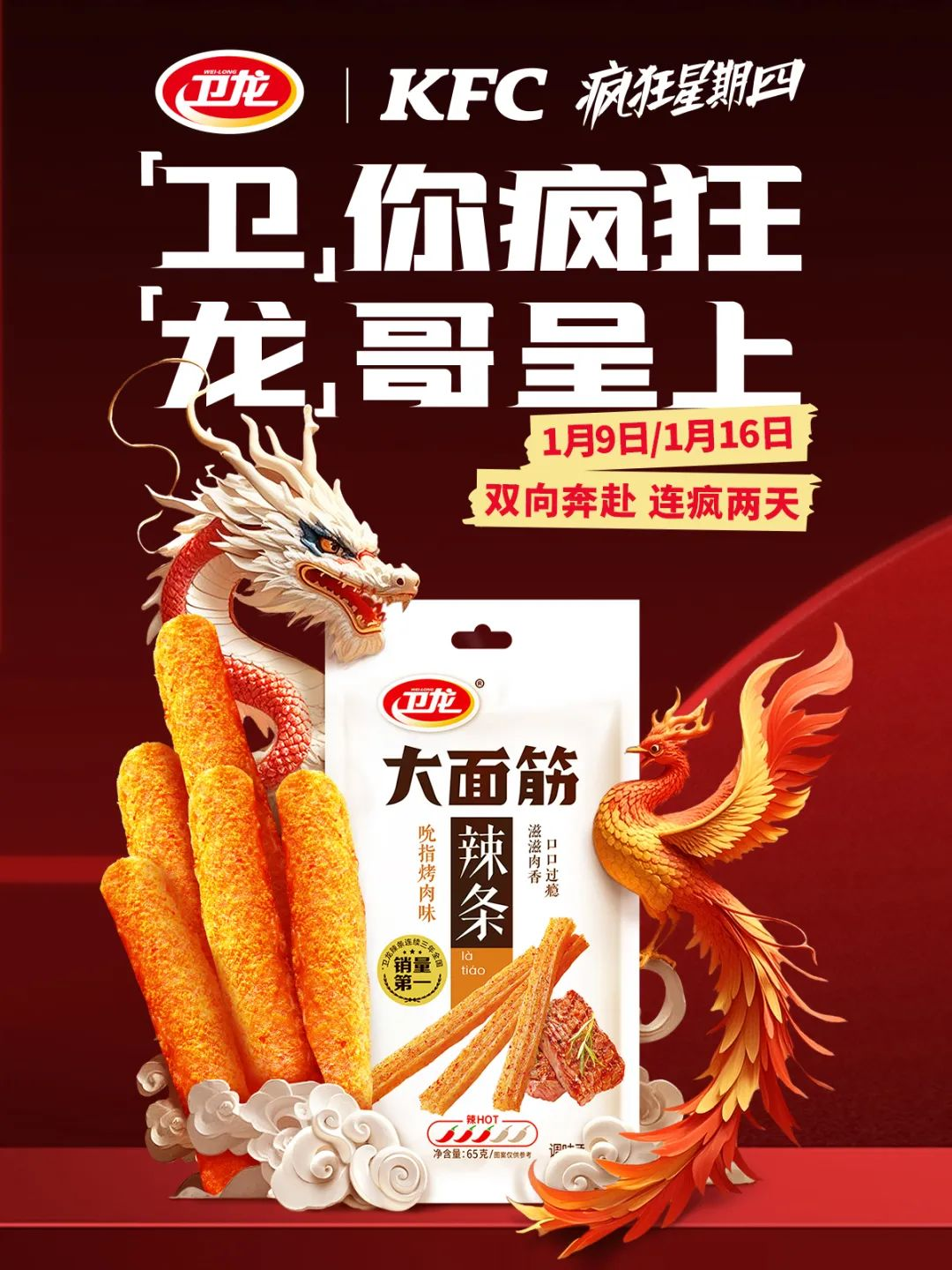 隨著2025年的到來,衛(wèi)龍攜手肯德基推出了“瘋狂星期四”活動(dòng),給營銷界帶來了一次不小的沖擊。此次衛(wèi)龍與肯德基的聯(lián)名合作,更是將“瘋狂”的概念發(fā)揮到了極致。在聯(lián)名主題店內(nèi),墻壁上布滿了以“瘋狂星期四”為主題的創(chuàng)意文案,例如“瘋搭子上線,開年就瘋辣!”和“衛(wèi)你瘋狂,龍哥呈上”等,打響2025年發(fā)瘋營銷第一炮。
