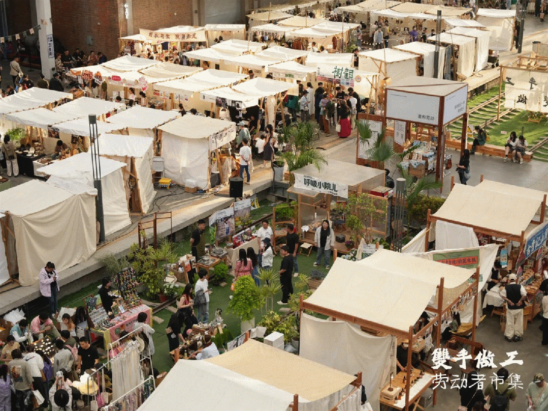 除了戲劇演出,上生·新所公共空間五一期間也舉辦了以“松弛療愈”為主題的手作市集活動,60+原創(chuàng)設(shè)計(jì)攤主為大家?guī)硪粓龇淳懑熡凳屑?,向市民游客傳遞各自的“慢生活”哲學(xué),讓我們找到都市煙火氣、找到人與人單純善意的社交,讓藝術(shù)浸潤生活,成為城市文化能量的聚集地。